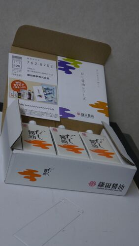 ディスlクロージャー関連印刷大手。5月末時点で株主名簿に記載された100株以上の保有者に対し「選べるギフト」から一品が送られる。 醤油セットを選んだ。