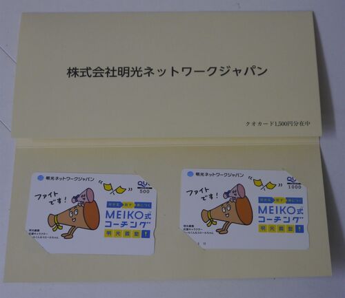 4668T 明光ネットワークジャパン 2020年度株主優待品 本年も昨日行われた株主総会決議に基づき配当金通知と優待品が送られてきた。優待品は従来通りのクオカードだったがコロナの影響により業績が厳しい結果となったため昨年までの半額の1500円分となった。…